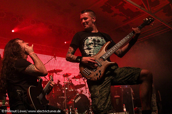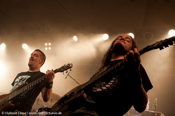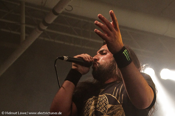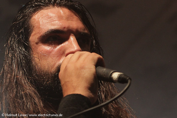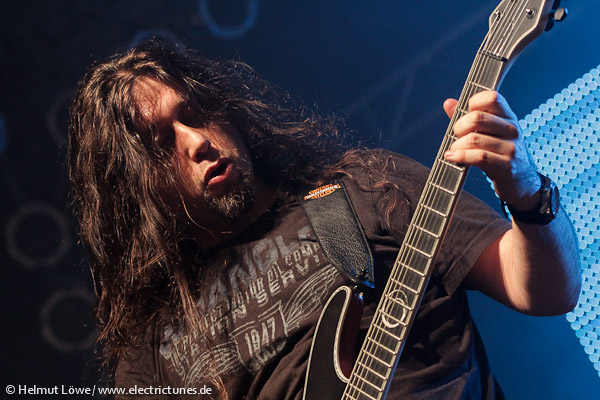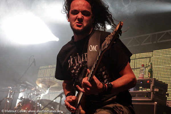 Am ersten Festivaltag, am Freitag, den 11. Oktober 2013, ging es bei nasskaltem Wetter draußen in der Halle der Essigfabrik und den kleinen Kellerräumen der Elektroküche brüllend laut und verdammt heiß her. Auf der Bühne standen unter anderem Textures aus den Niederlanden, The Agonist und Threat Signal aus Kanada sowie die multinationale Truppe Skyharbor mit Musikern aus Indien. Hier einige Fotos vom Euroblast am Freitag. (Fotos: Helmut Löwe)