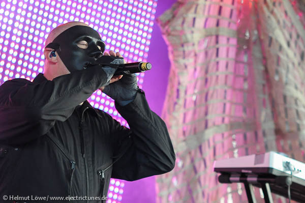 Eitel Sonnenschein herrschte am Samstag auf dem Amphi-Festival 2014 im Kölner Tanzbrunnen: vor allen Dingen unter den schwitzenden Besuchern. Weniger allerdings beim Headliner auf der Open-Air-Bühne; die EBM-Ikonen Front 242 hatten große Probleme mit der Technik. Da ihr Equipment den Geist aufgab, war nach 5 Minuten Schluss mit belgischem Elektrowumms. Erst nach einer Dreiviertelstunde lief’s wieder, sodass Daniel B. und Kumpels einen kurzen Restset absolvierten.