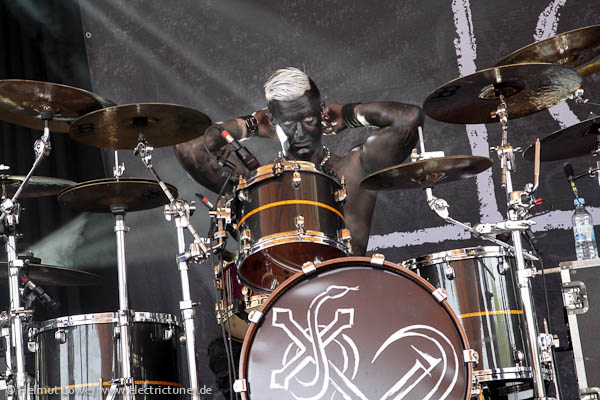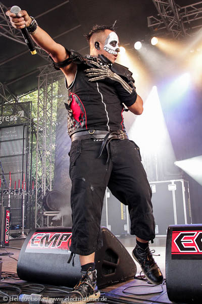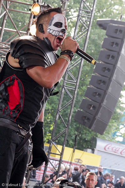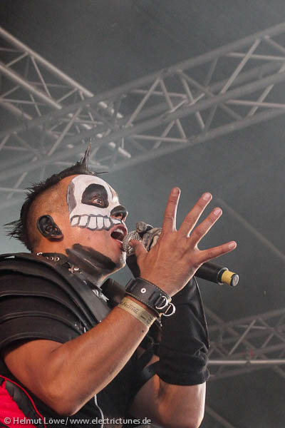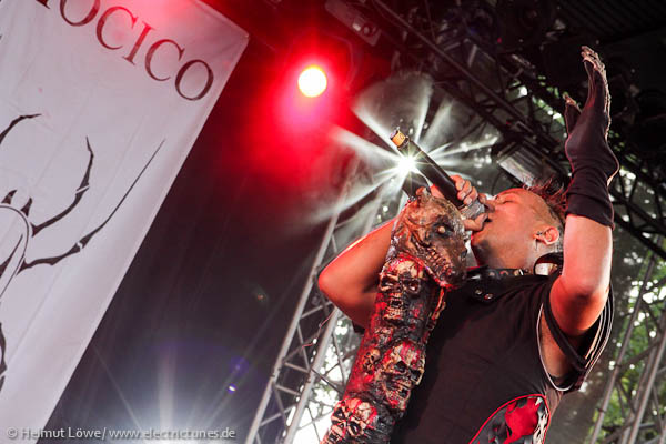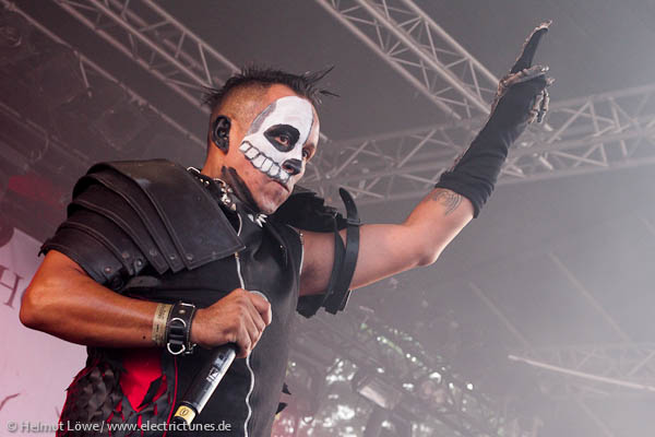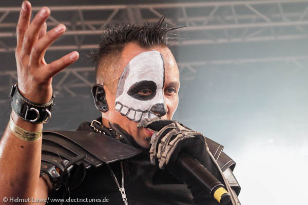 Vorher hatten Corvus Corax die Illusion eines Haithabu samt mittelalterlicher Instrumente heraufbeschworen, die Mexikaner Hocico stiegen mit Mariachiklängen ein, um jene dann mit deftigem Aggrotech abzulösen. Clan of Xymox ließen die 80er Jahre auferstehen und Lord of the Lost lieferten eine schwarz-weiße Mischung von Darkrock. Hier Bilder der Bands am Samstag. (Fotos: Helmut Löwe)