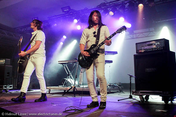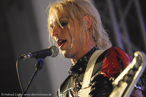 In der Staatenhalle wüteten die musikalischen Endzeitkrieger von London after Midnight nach anfänglichen Technikproblemen. Industrial aus deutschen Landen brachten Die Krupps unters Volk. Der Name The Exploding Boy entstammt nicht nur einem Cure-Song, die musikalische Ausrichtung der Schweden ist recht eng an dem der früheren Cure-Tage und deren melancholischem Waverock angelehnt. Klangstabil schließlich sorgten mit Elektrorhythmus für viel Getanze. Hier einige Fotos der Bands am Sonntag. (Fotos: Helmut Löwe)