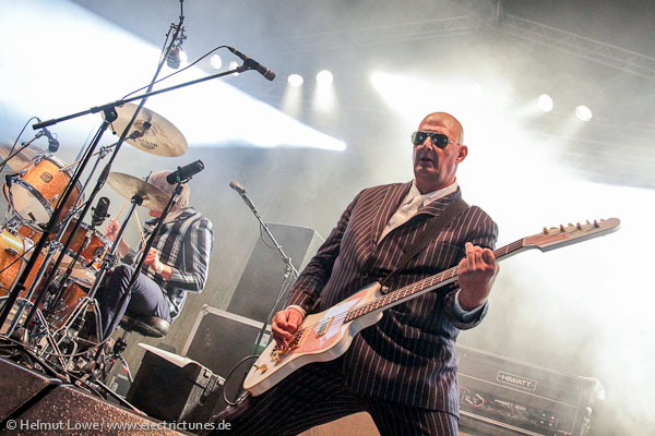 Das Wetter spielte mit, Sonnenschein verbreitete gute Laune und brachte das Publikum zum Tanzen und bei Mr. Irish Bastard zum munteren Pogen. Triggerfinge ließen ihren bekannten Durchbruchshit, das Cover von Lykke Lis „I follow Rivers“ ganz außen vor, schleuderten deftig-heftige Rockattacken aus den Lautsprechern. Hier Fotos des ersten Tages des Fährmannsfestes. (Fotos: Helmut Löwe)