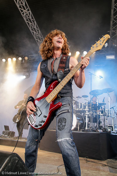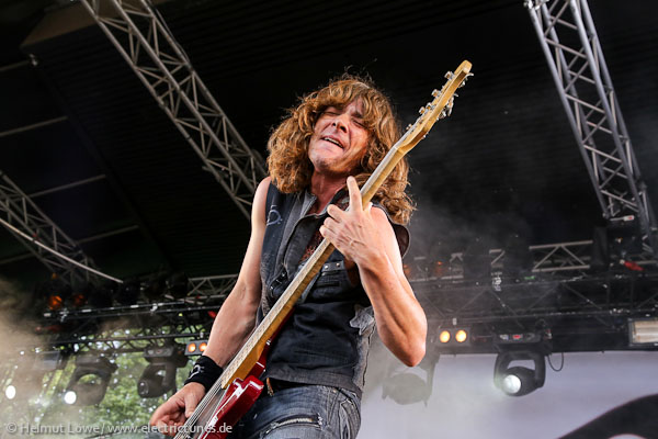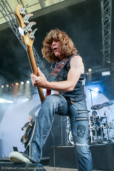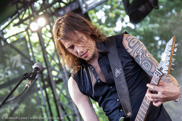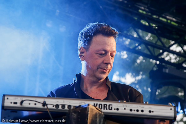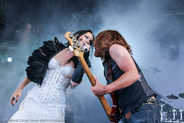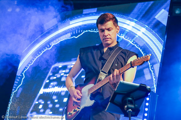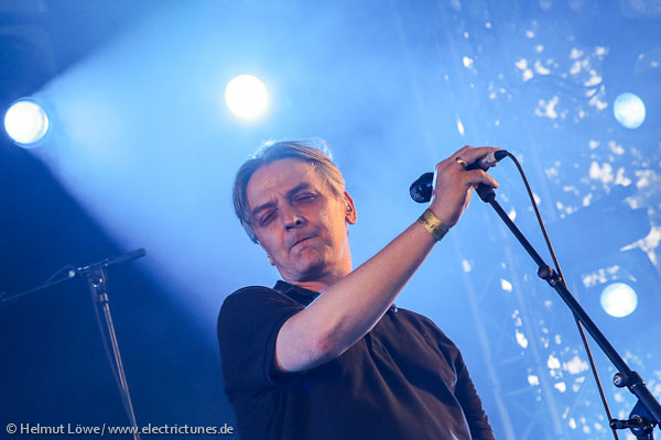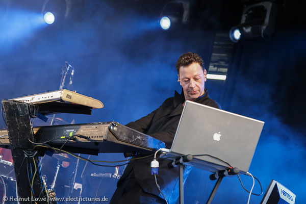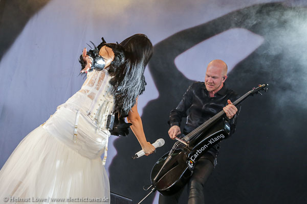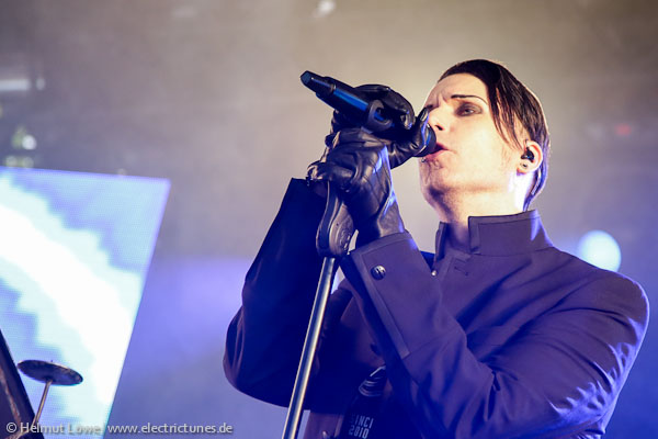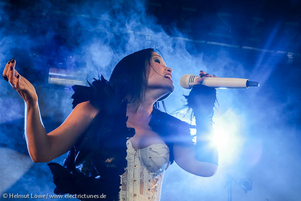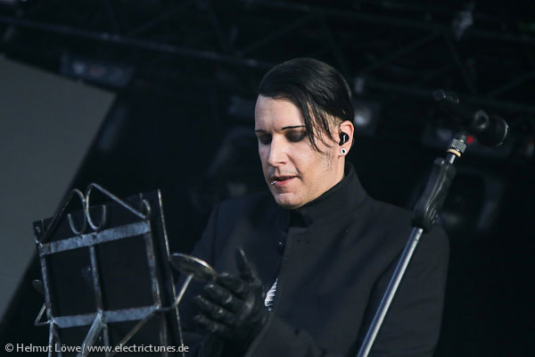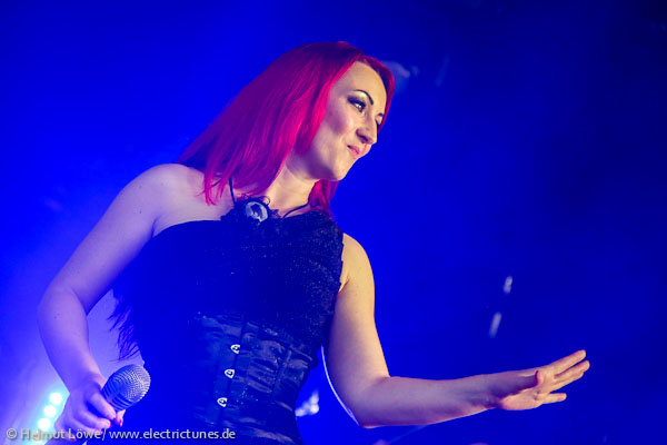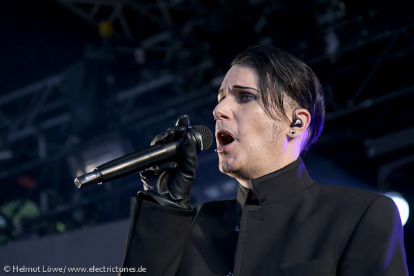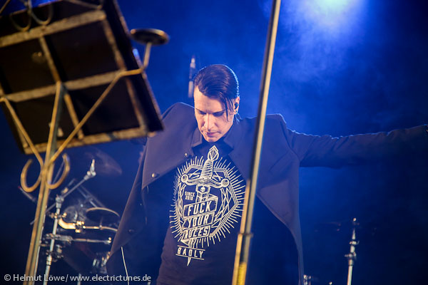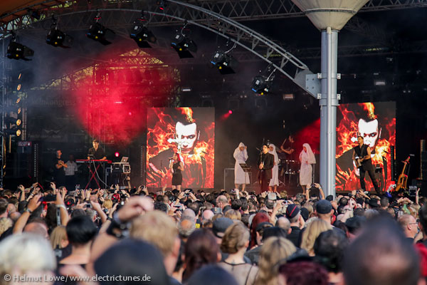 Etwas leichter hatte es musikalisch da Peter Heppner, dessen Mischung aus melancholisch durchtränktem Synthie Pop und Dark Wave eher den Geschmack der Zuschauer traf. Eine gewisse Eintönigkeit quer durch die Songs konnte man Heppner jedoch nicht absprechen. Als Headliner standen Blutengel auf der Bühne. Der Dark Pop des Gesangsduos Chris Pohl und Ulrike Goldmann sowie deren Mitmusiker wurde showmäßig aufgepeppt durch reichlich Tänzerinnen sowie Feuer und Videosequenzen. Für das Publikum ein gelungener Abschluss am Abend. Hier Fotos der Bands am Samstag. (Fotos: Helmut Löwe)