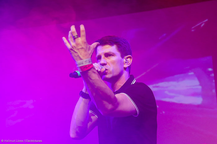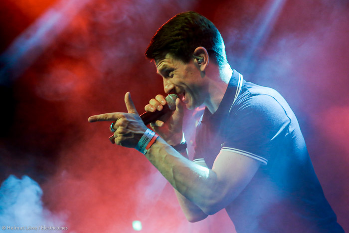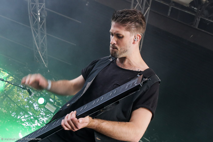 Chrom am frühen Nachmittag und der Headliner VNV Nation dagegen ließen fettes Elektrogewummere über das Tanzbrunnenareal erschallen. Ebenso elektrolastig das musikalische Treiben im Theater – allerdings ganz schön im Dunkel der Bühne optisch fast schon verheimlicht. Ob Fabrikc, Torul oder Frozen Plasma, bei Elektro- oder Synthierhythmen reichte das Hören vollkommen aus, Sehen war kaum nötig. Gerne auch beim schwedischen Synthieduo Kite, von denen meist lediglich die fluoreszierenden Keyboardständer mit den Augen auszumachen waren. Zum Rausschmiss gab es dann aber doch noch die ordentliche Elektrorock- und Industrialkeule von Die Krupps. Hier einige Fotos der Bands von Samstag. (Fotos: Helmut Löwe)