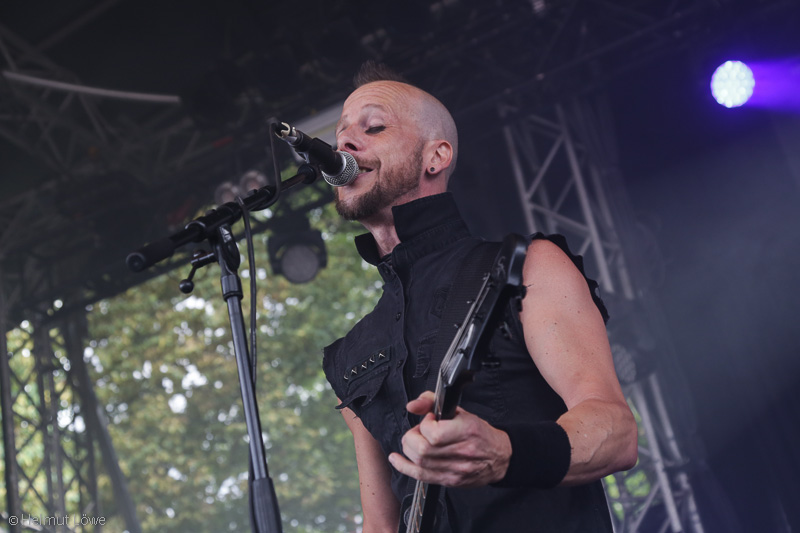 So kam es, dass niemand vor der Open-Air-Bühne bei den Auftritten von ASP, den Wave-Elektropohelden OMD, Aesthetic Perfection Unzucht oder Mono Inc. vor Hitze umkam. Die Hamburger Dark-Rocker um Frontmann Martin Engler hatten die Veröffentlichung ihres neuen Albums „Welcome to Hell“ passenderweise für genau diesen Tag ihres Auftrittes vor den 12.500 Amphibesuchern gelegt. Im Theater spielte sich mit Centhron, [:SITD:] und Funker Vogt Elektronisches ab, mal mit mehr, mal mit weniger Wumms. Und dank der Lüftung war’s dort sogar angenehm kühl. (Fotos: Helmut Löwe)